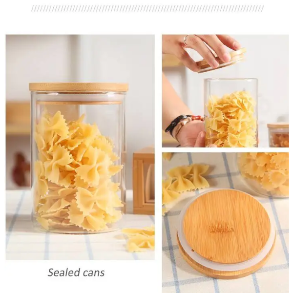 3 Round Glass Jars And Lids Airtight Canister Glass Spice Jarwith bamboo stand